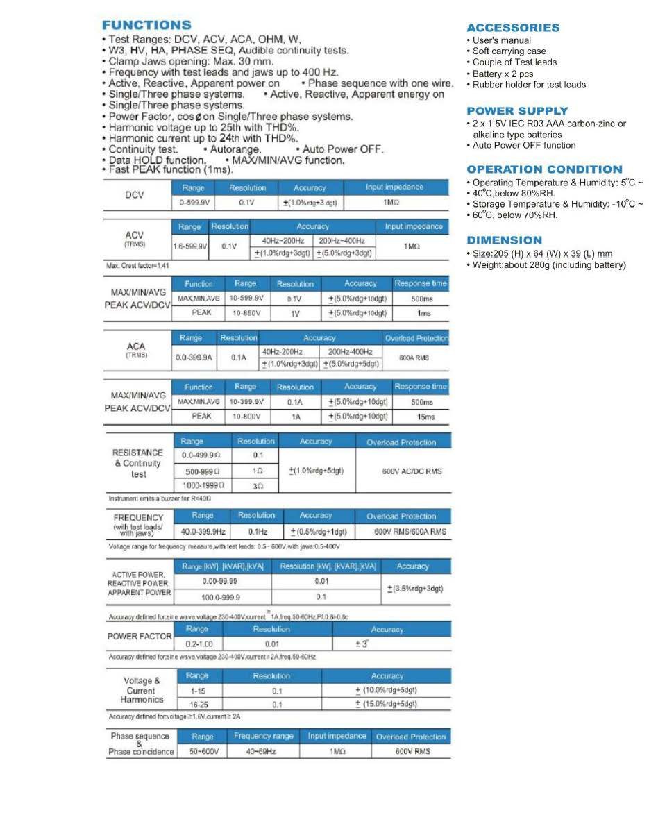 40Hz to 399.9 Hz ±(0.5% + 1 dgt)