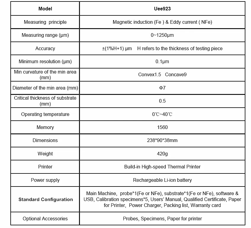 ●Magnetic Induction (Fe): Measuring the thickness of Non-magnetic coating on magnetic metal substrate, such