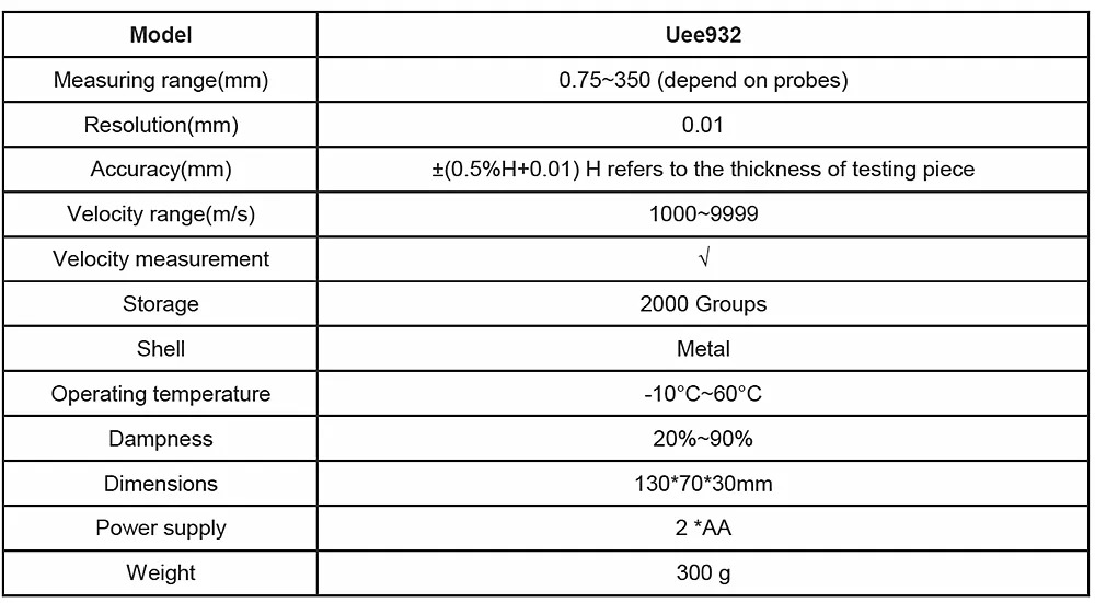 ● Adapted to all kinds of materials which are good conductor of ultrasonic wave, such as metals(steel, cast iron, aluminum, copper and etc), plastic, ceramics, composites, epoxies, glass and etc.